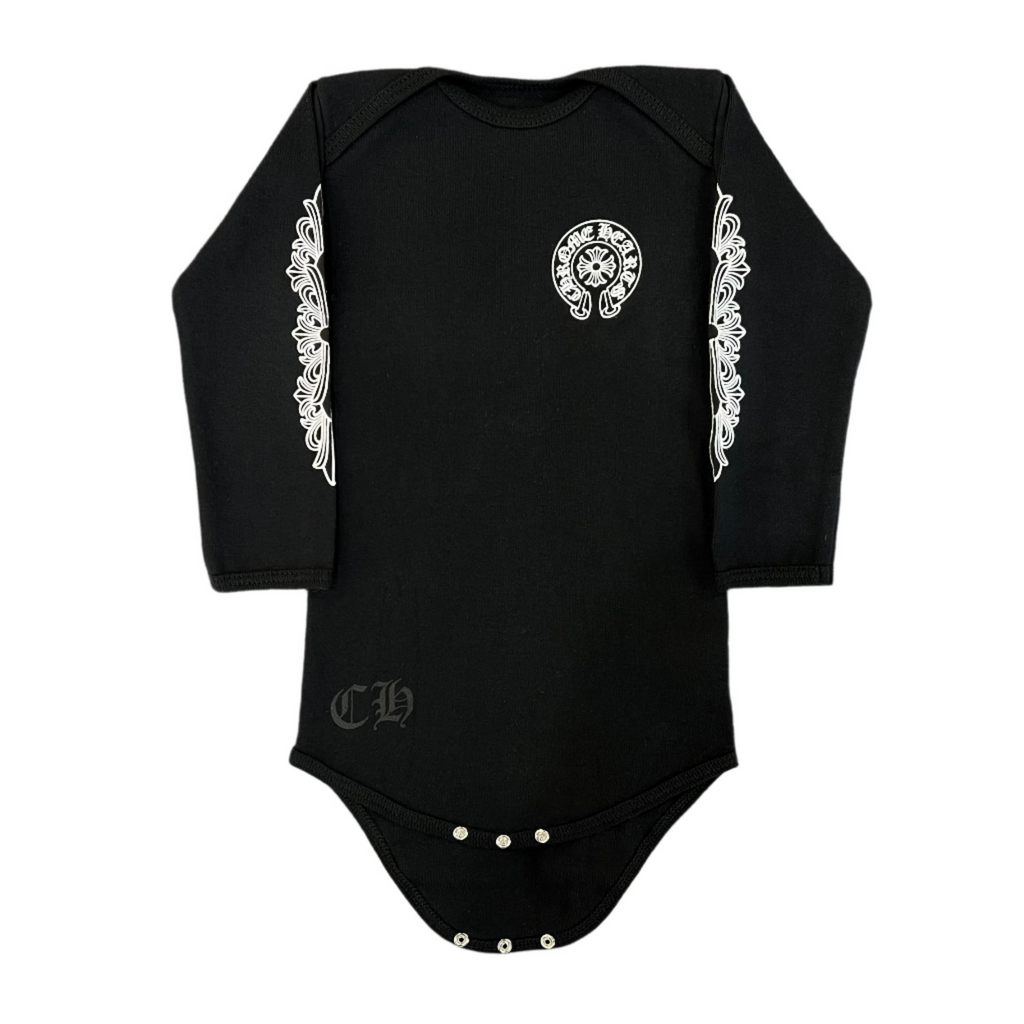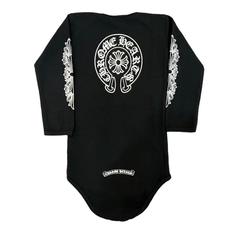 Baby Floral Horseshoe Long-Sleeve BodySuit (Black)
