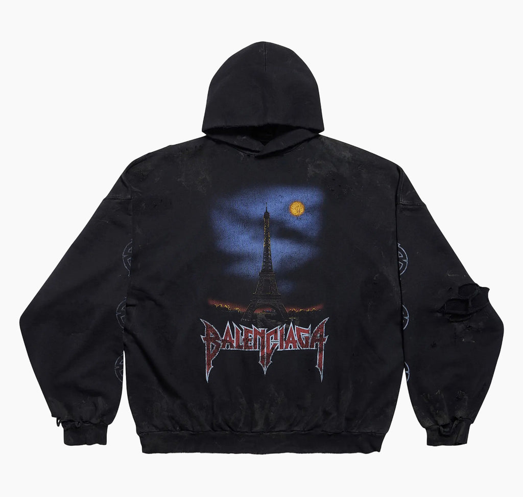 Balenciaga Paris Moon No Pocket Dirty Oversized Hoodie