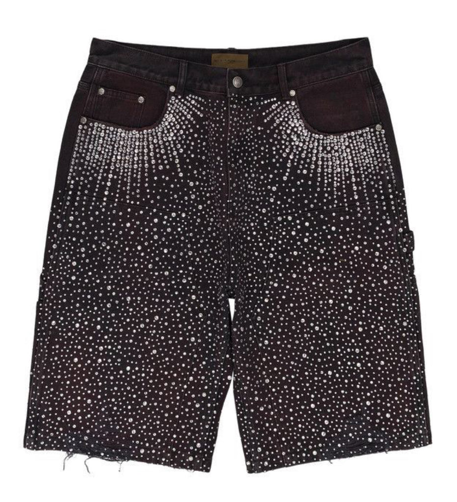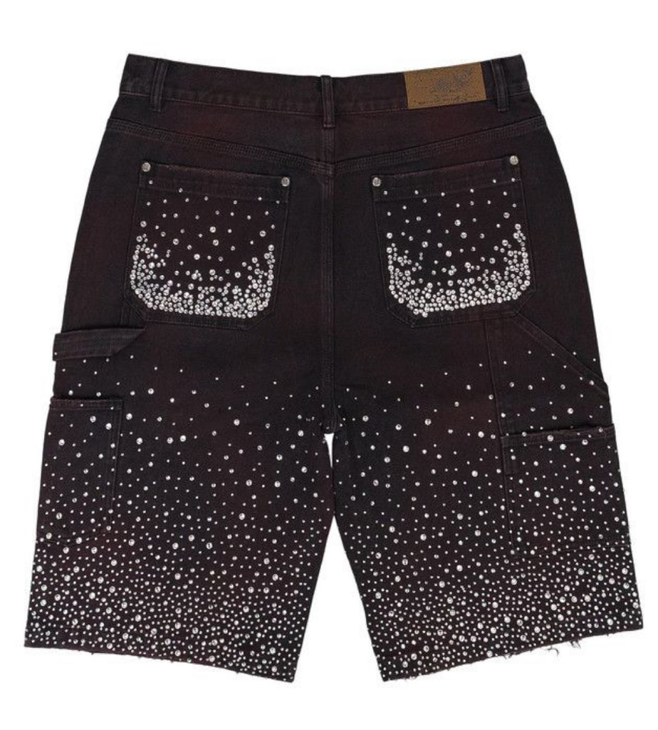 Rhinestone Cowboy Black Acid Wash Denim Shorts