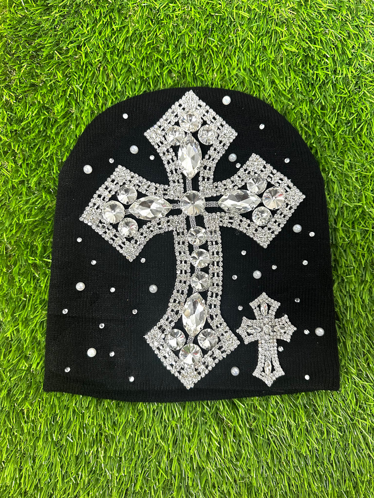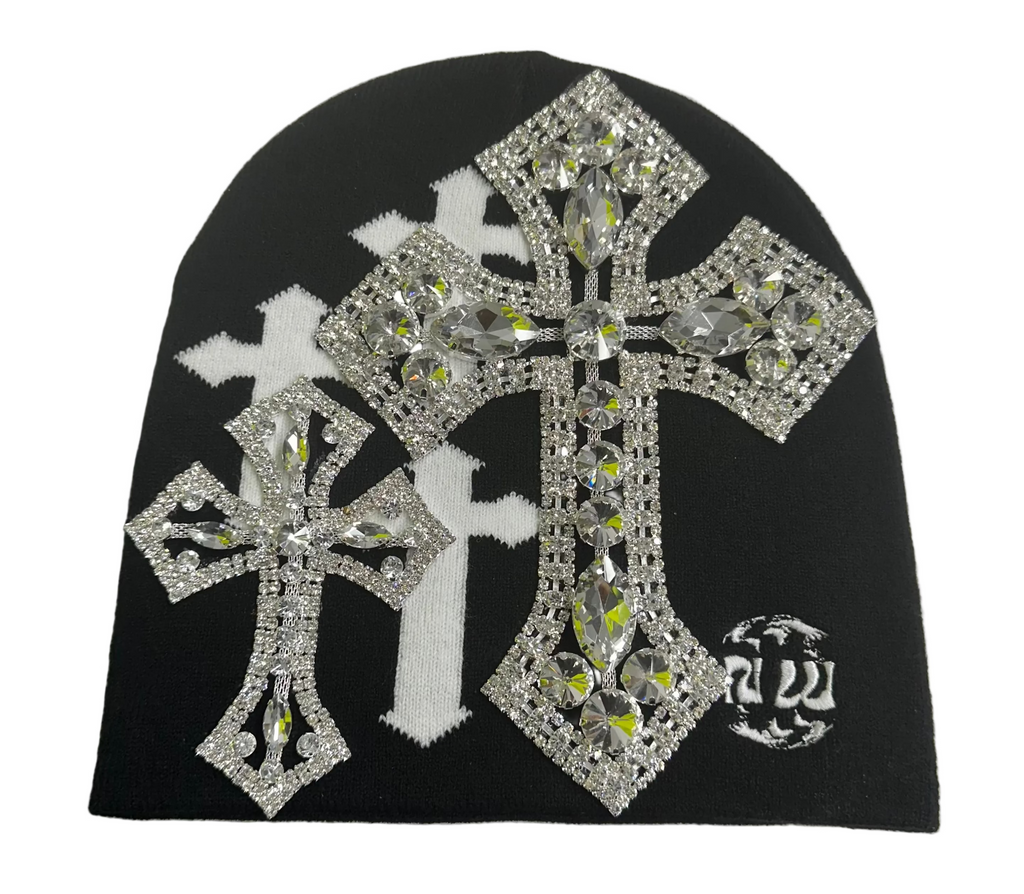 CUSTOM CROSS CRYSTAL BLACK BEANIE