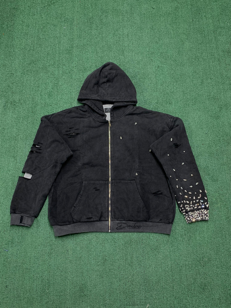 DRMCHSRS RHINESTONE ZIP UP BLACK
