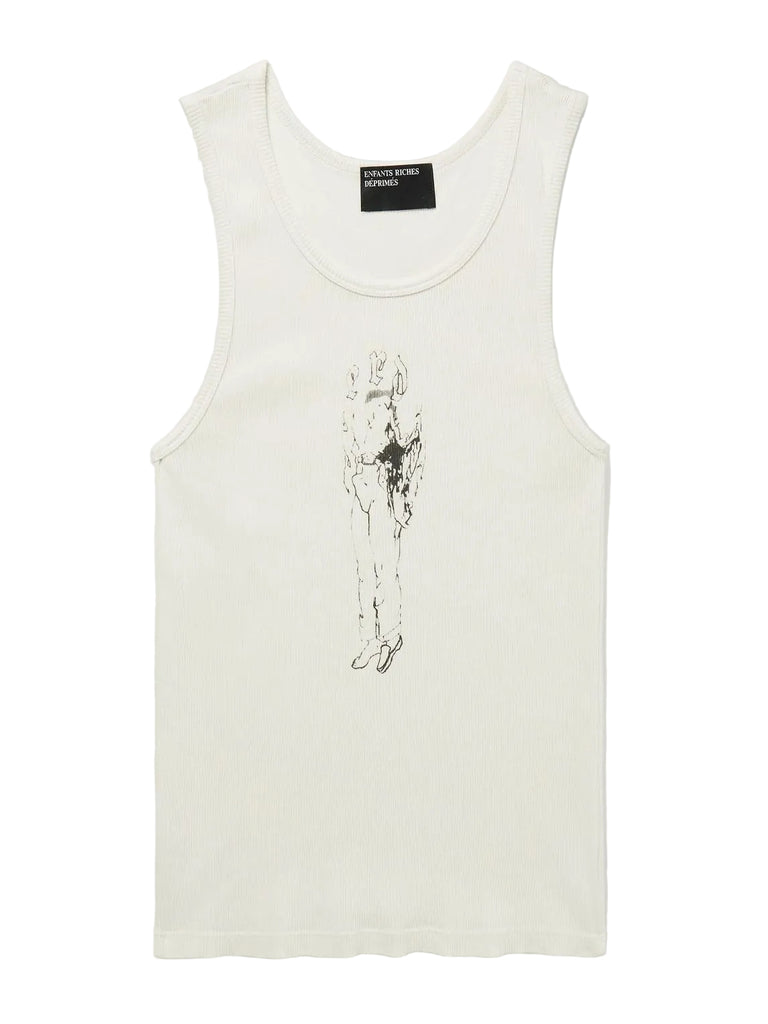 ERD Bad Professor Logo-Print Ribbed Cotton Tank (White)