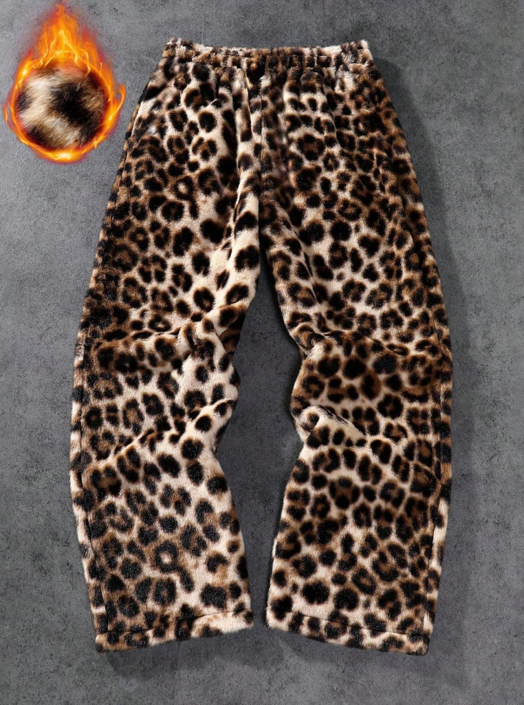Fluffy Leopard Print Sweatpants