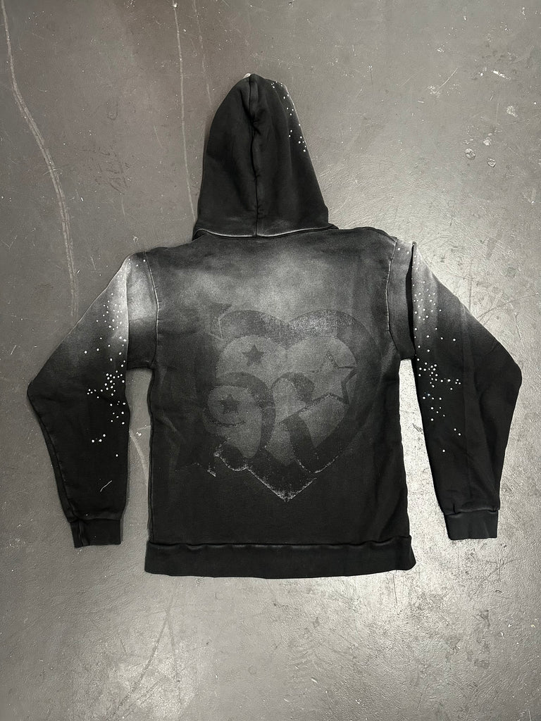 Heart Star Rhinestone Black Hoodie