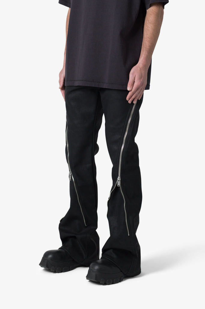 MNML LEATHER ZIPPER FLARE PANTS BLACK