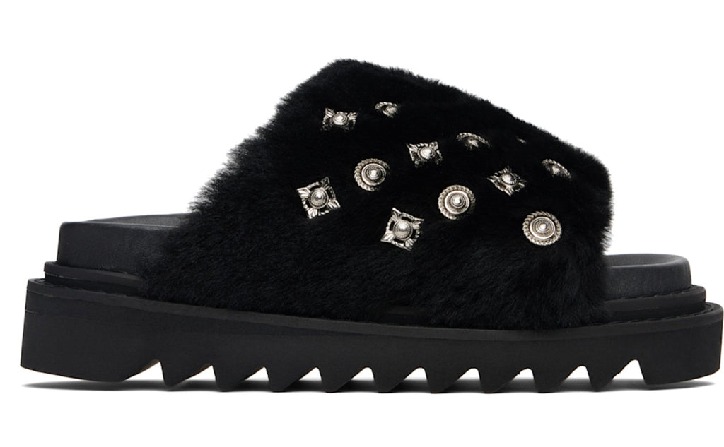 TOGA PULLA BLACK FUR CONCHO SLIPPERS