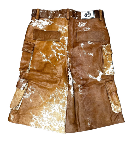 Utility Cowhide Cargo Leather Shorts Tan and White
