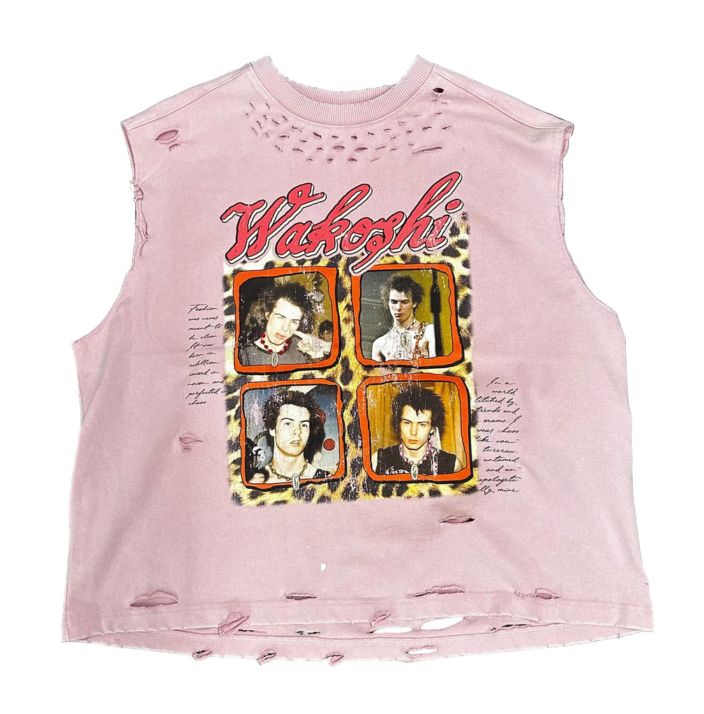 Wakoshi Distressed Sleeveless Crewneck (Pink)