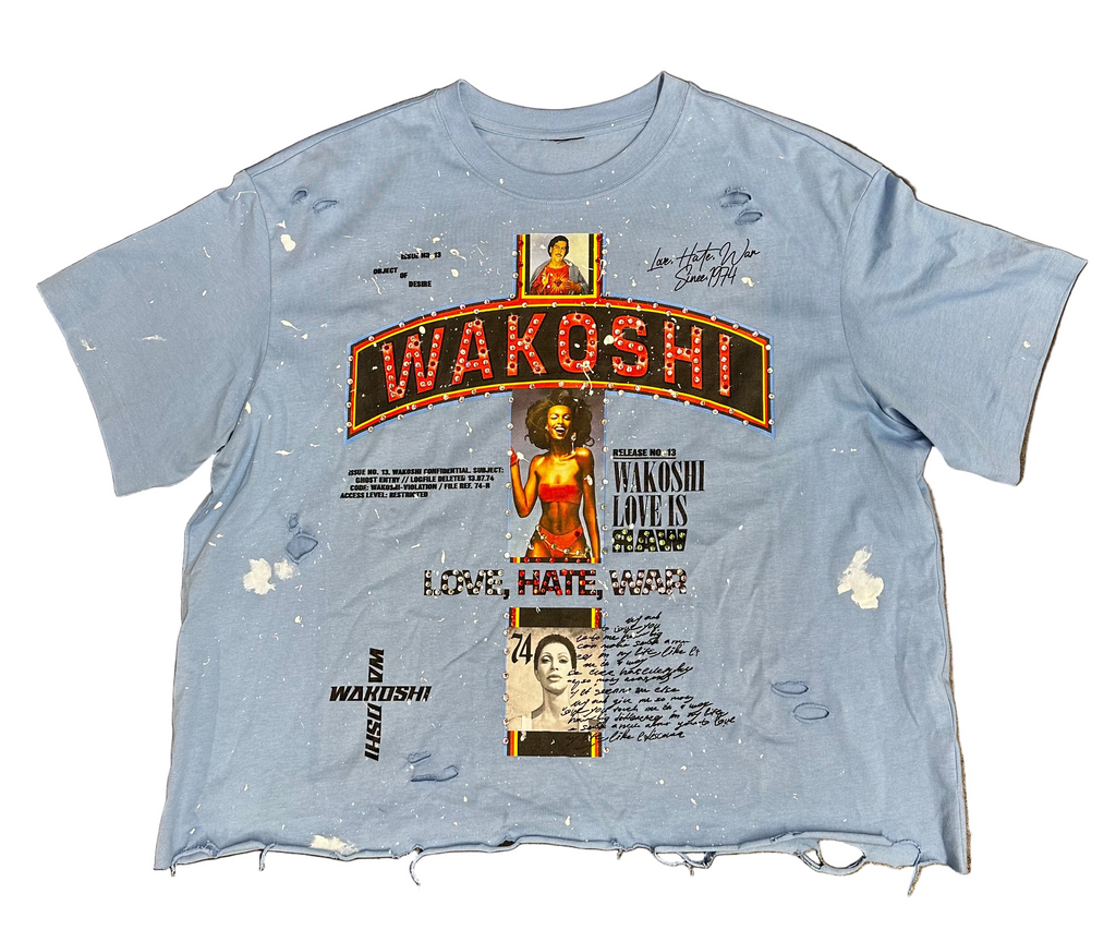 Wakoshi Paint Splatter Distressed Tee (Light Blue)